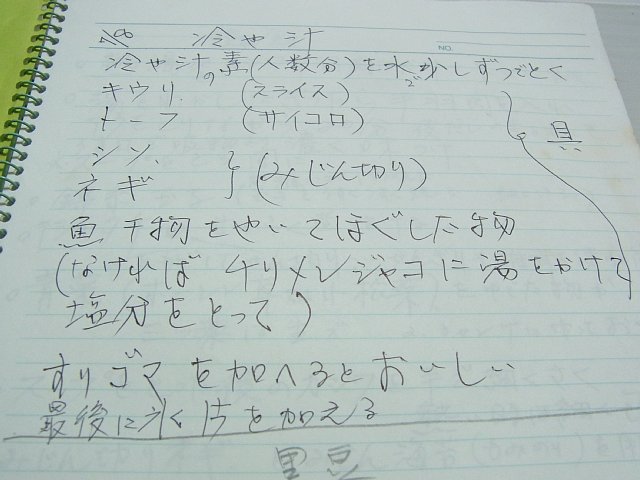 というわけで、冷や汁編はおしまい。レシピはまだあるので、涼しくなったら、もっと難しいレシピに挑戦します。